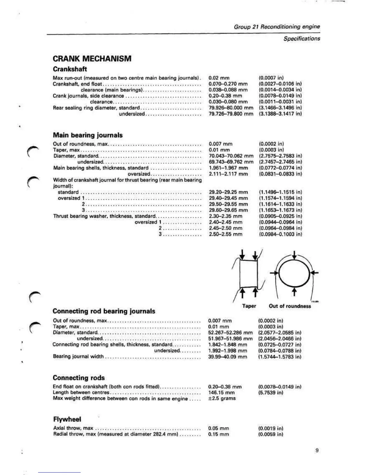 Max run-out (measured on two centre main bearing journals). 0.02 mm