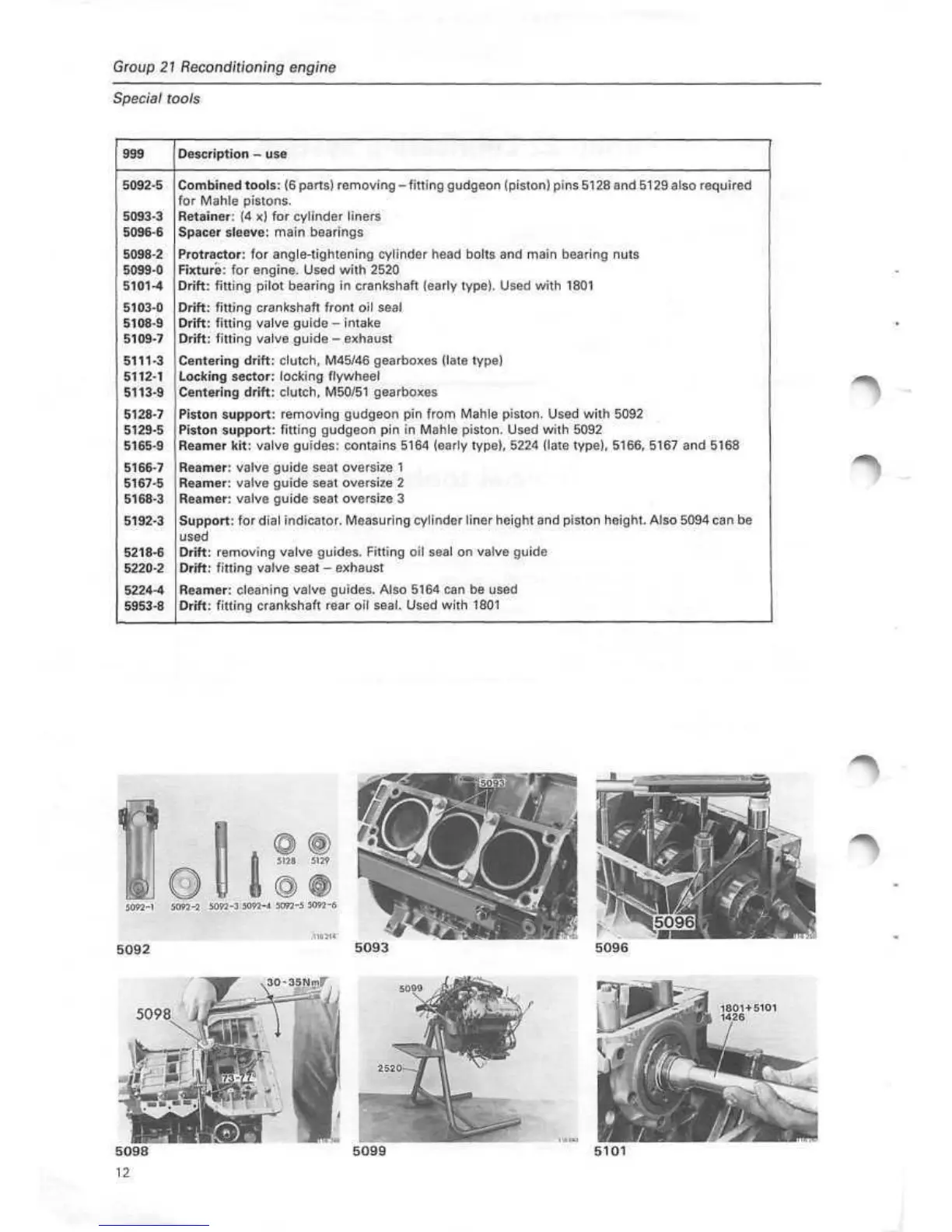 Piston support: fitting gudgeon pin in Mahle piston. Used with 5092