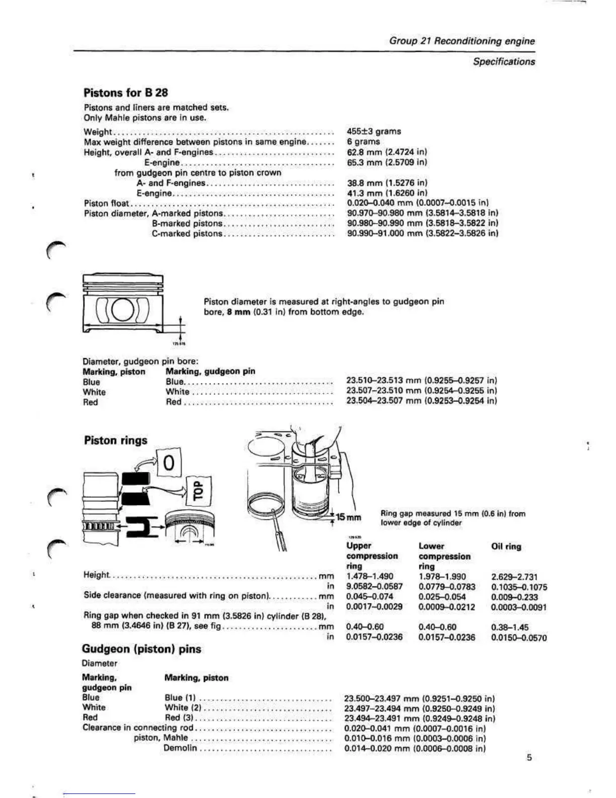 Ring gap when checked in 91 mm (3.5826 in) cylinder (B 28),