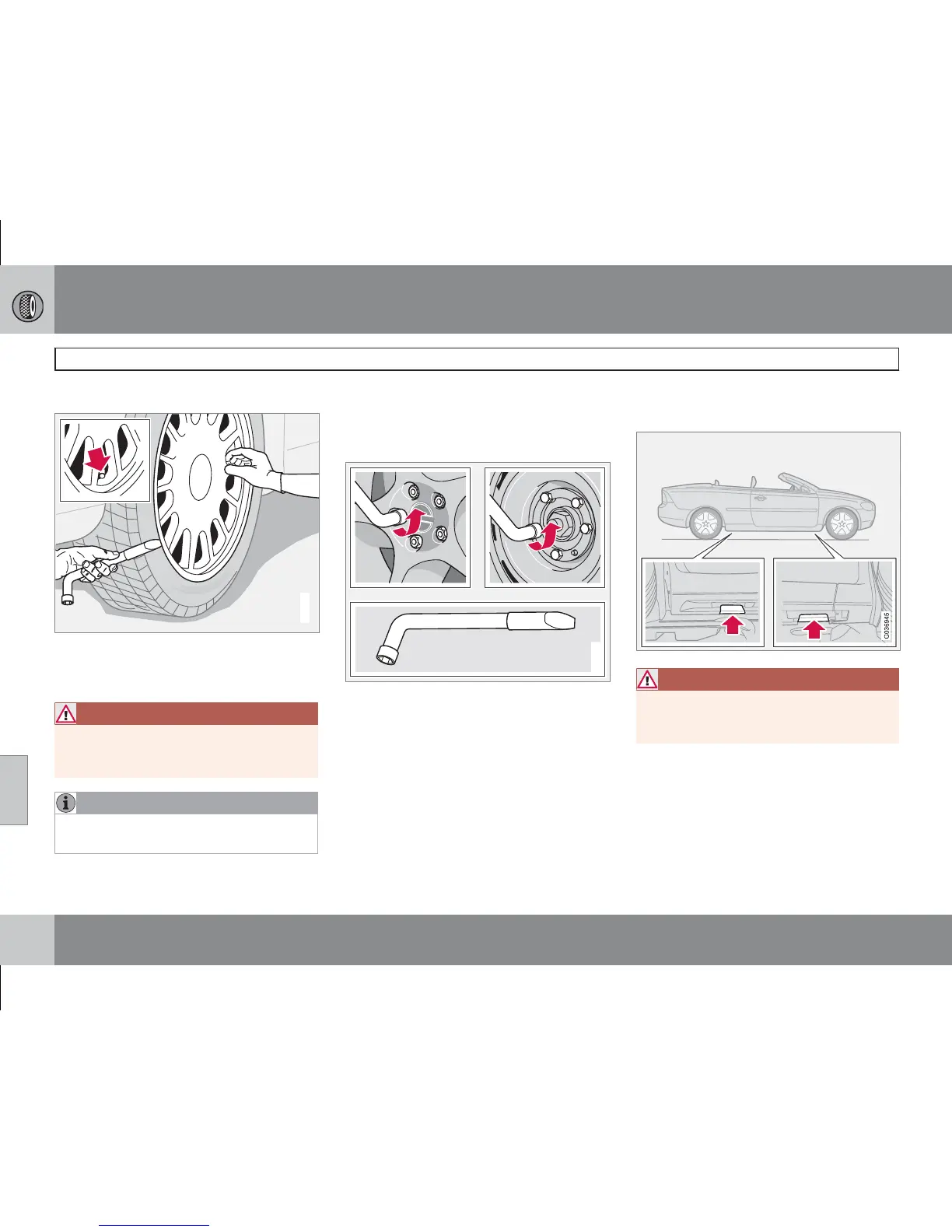 1. Take out the spare wheel*, jack* and wheel
