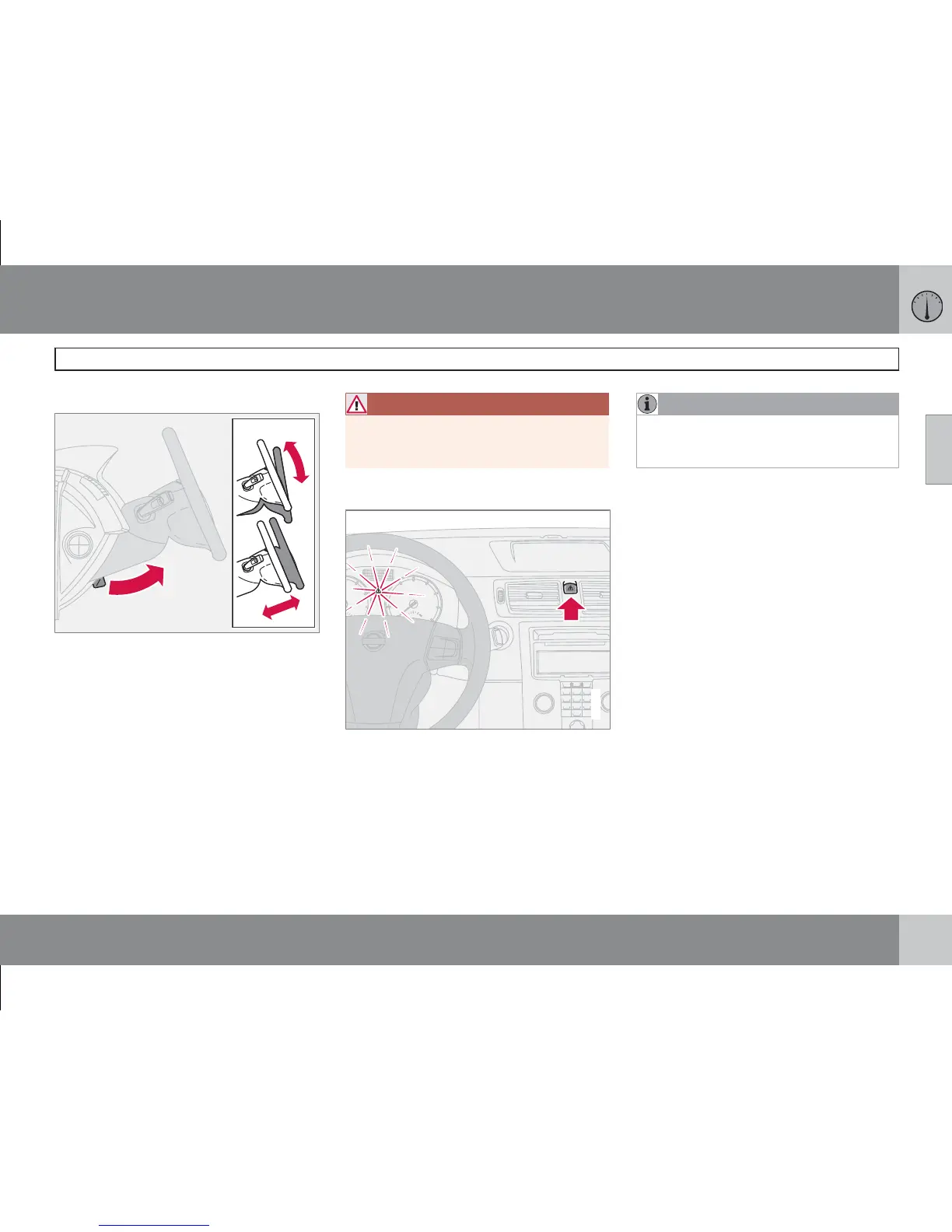 Steering wheel adjustment, hazard warning flashers