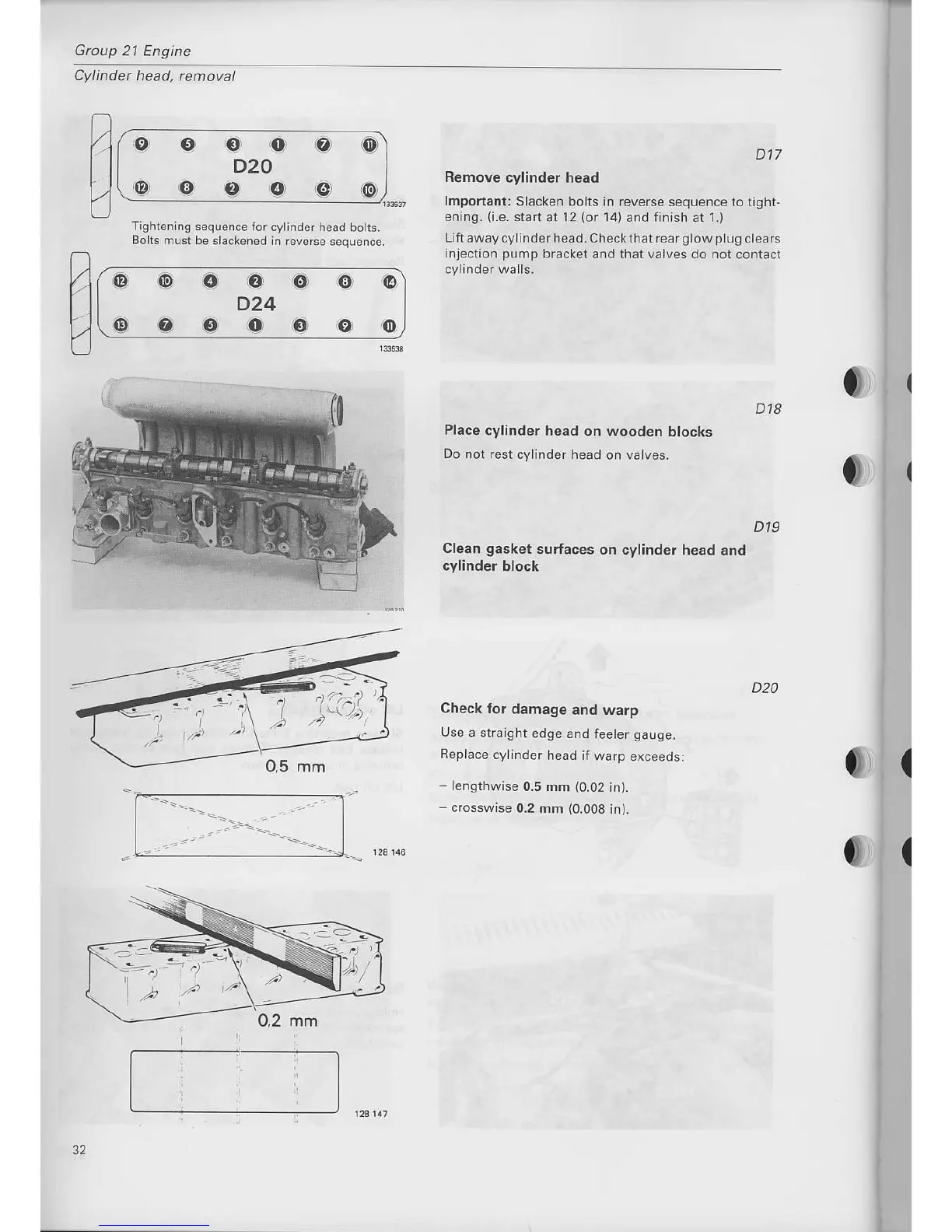 Volvo D 20 - Remove Cylinder Head; Check for Damage and Warp