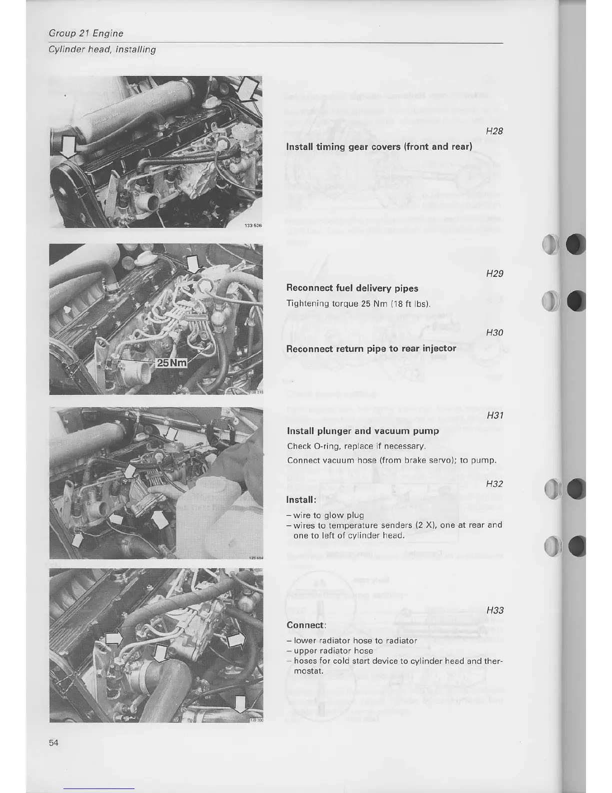 Volvo D 20 - Reconnect Fuel Delivery Pipes; Install Plunger and Vacuum Pump