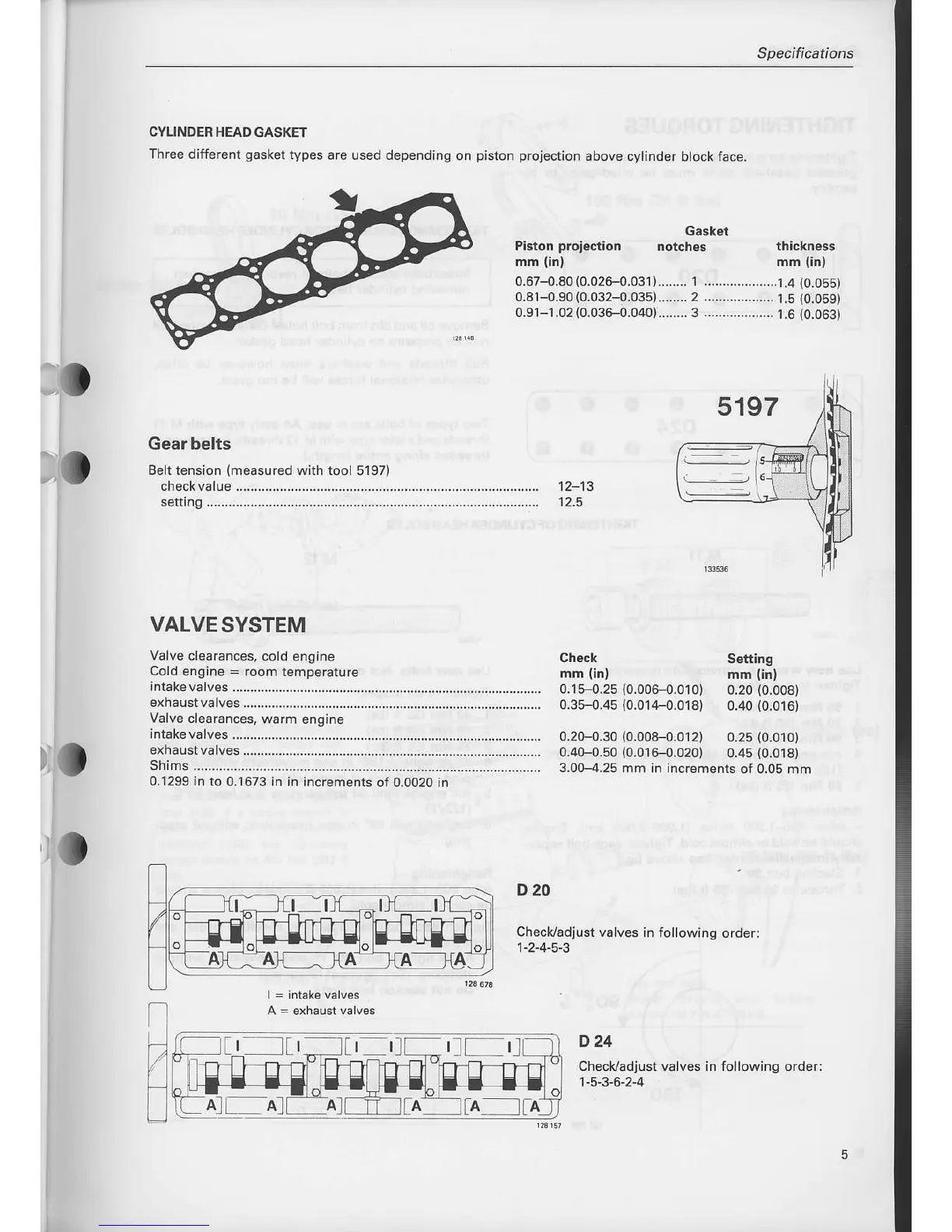 Volvo D 20 - Cylinder Head Gasket; Gear Belts; Valve System
