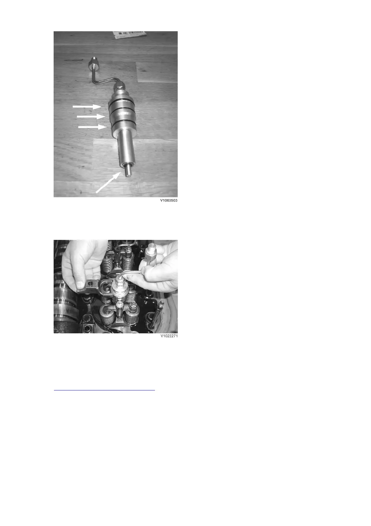 14. Tighten down the adapter with the unit injector's attaching yoke. Tightening torque: 40 Nm (30 lbf ft).
