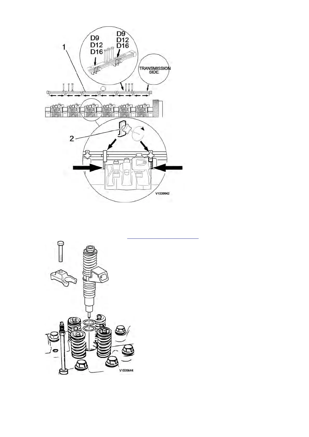 22. Install the unit injectors with new O-rings and centre the unit injectors between the valve springs. Install the