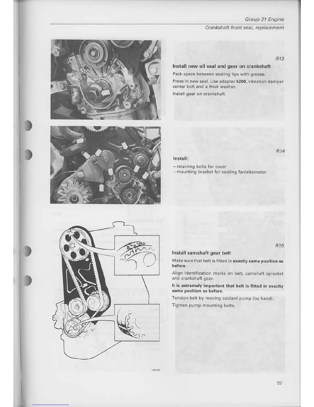 Volvo D24 - Install New Oil Seal and Gear on Crankshaft; Install Camshaft Gear Belt