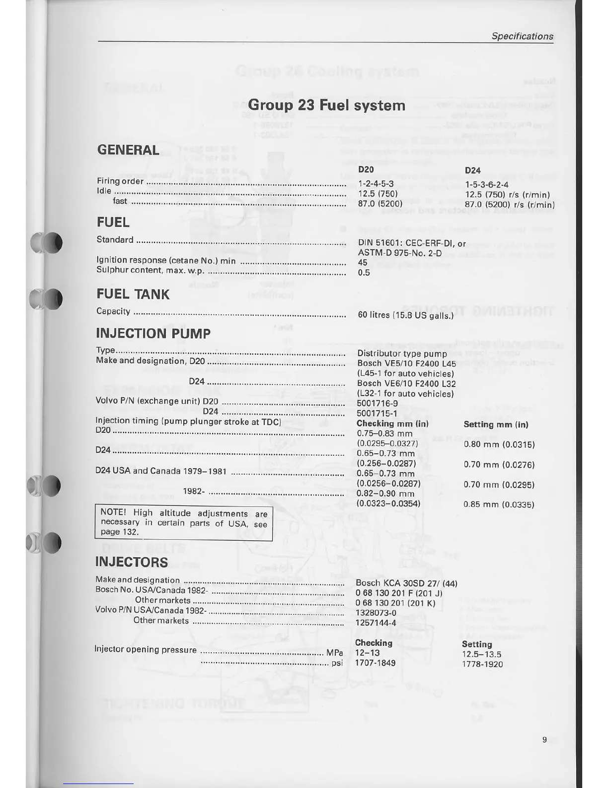 Volvo D24 - GENERAL; FUEL; FUEL TANK; INJECTION PUMP