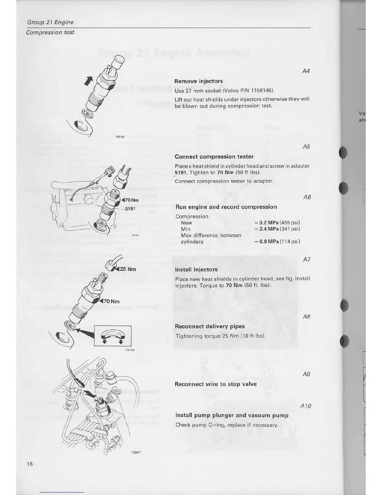 Volvo D24 - Remove Injectors; Connect Compression Tester; Run Engine and Record Compression; Install Injectors