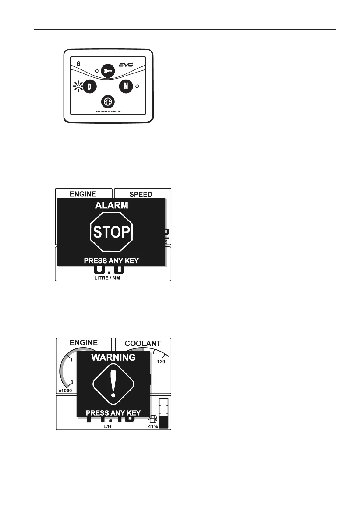 NOTE! Acknowledge the alarm and stop the engine at