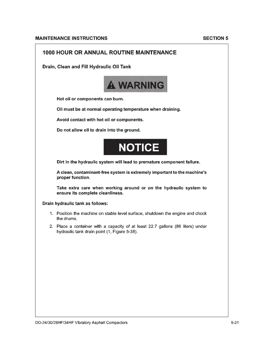 Volvo DD30 - 1000 Hour or Annual Routine Maintenance; Drain, Clean and Fill Hydraulic Oil Tank; Drain Hydraulic Tank