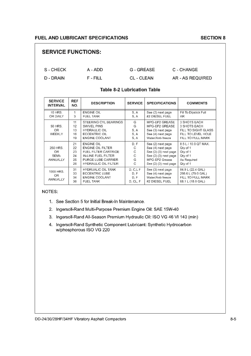 Volvo DD30 - Service Functions; Lubrication Table