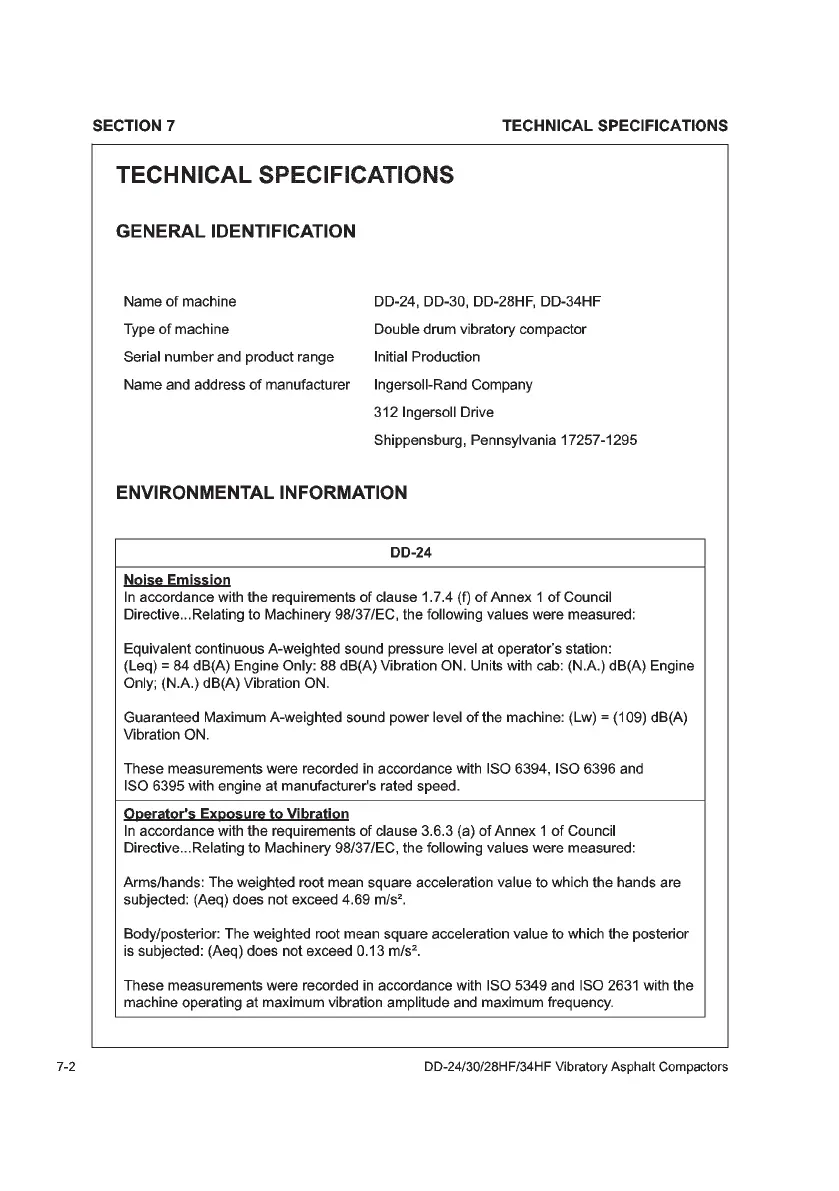 Volvo DD34HF - General Identification; Environmental Information; Noise Emission; Exposure to Vibration