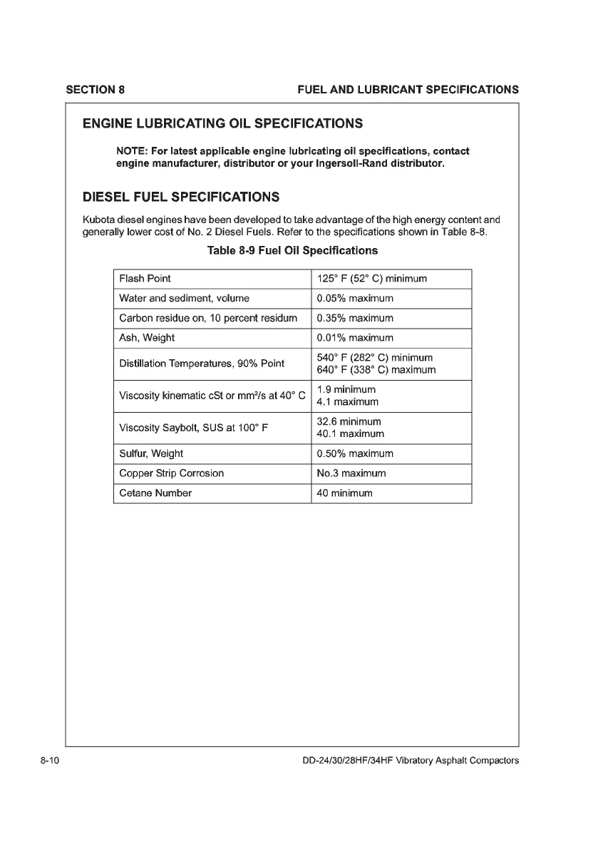 Volvo DD34HF - Engine Lubricating Oil Specifications; Diesel Fuel Specifications; Fuel Oil Specifications