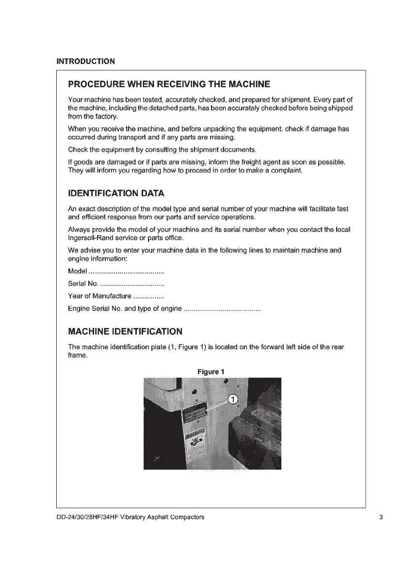 Volvo DD34HF - Procedure When Receiving the Machine; Identification Data; Machine Identification