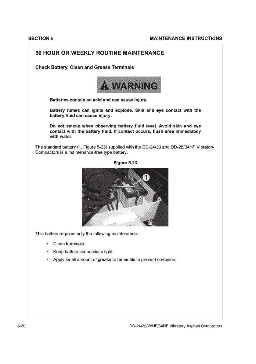 Volvo DD34HF - 50 Hour or Weekly Routine Maintenance; Check Battery, Clean and Grease Terminals