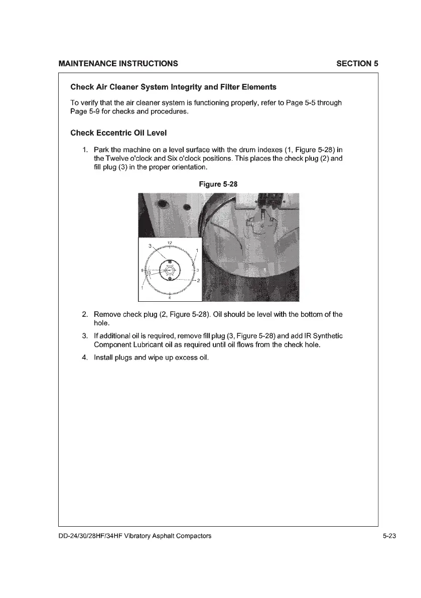 Volvo DD34HF - Check Air Cleaner System Integrity and Filter Elements; Check Eccentric Oil Level