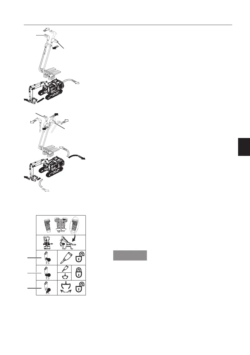 Pull the right lever (D) backward, the R/H track