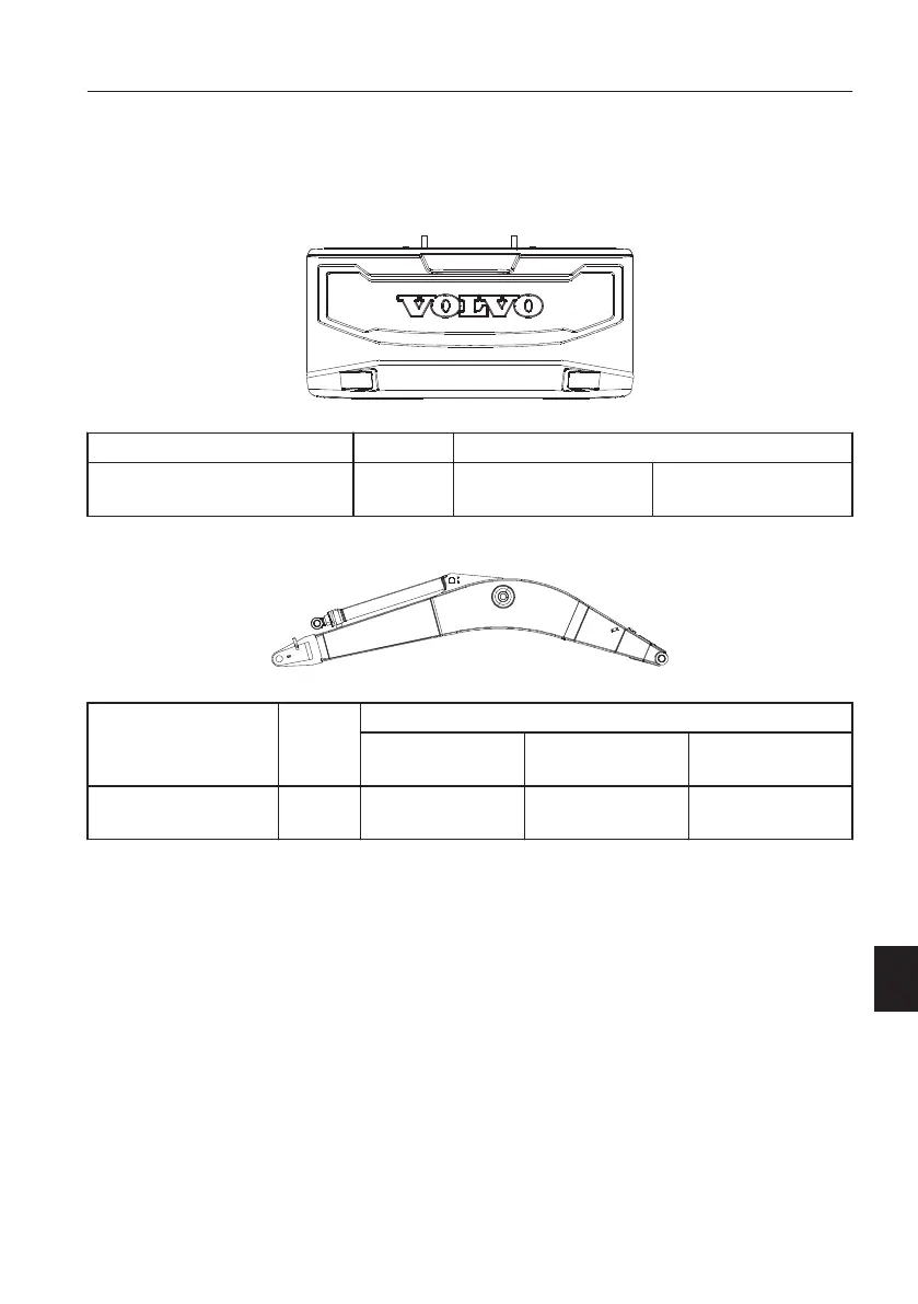 Volvo EC140E - Machine weights; Disassembled parts, weight