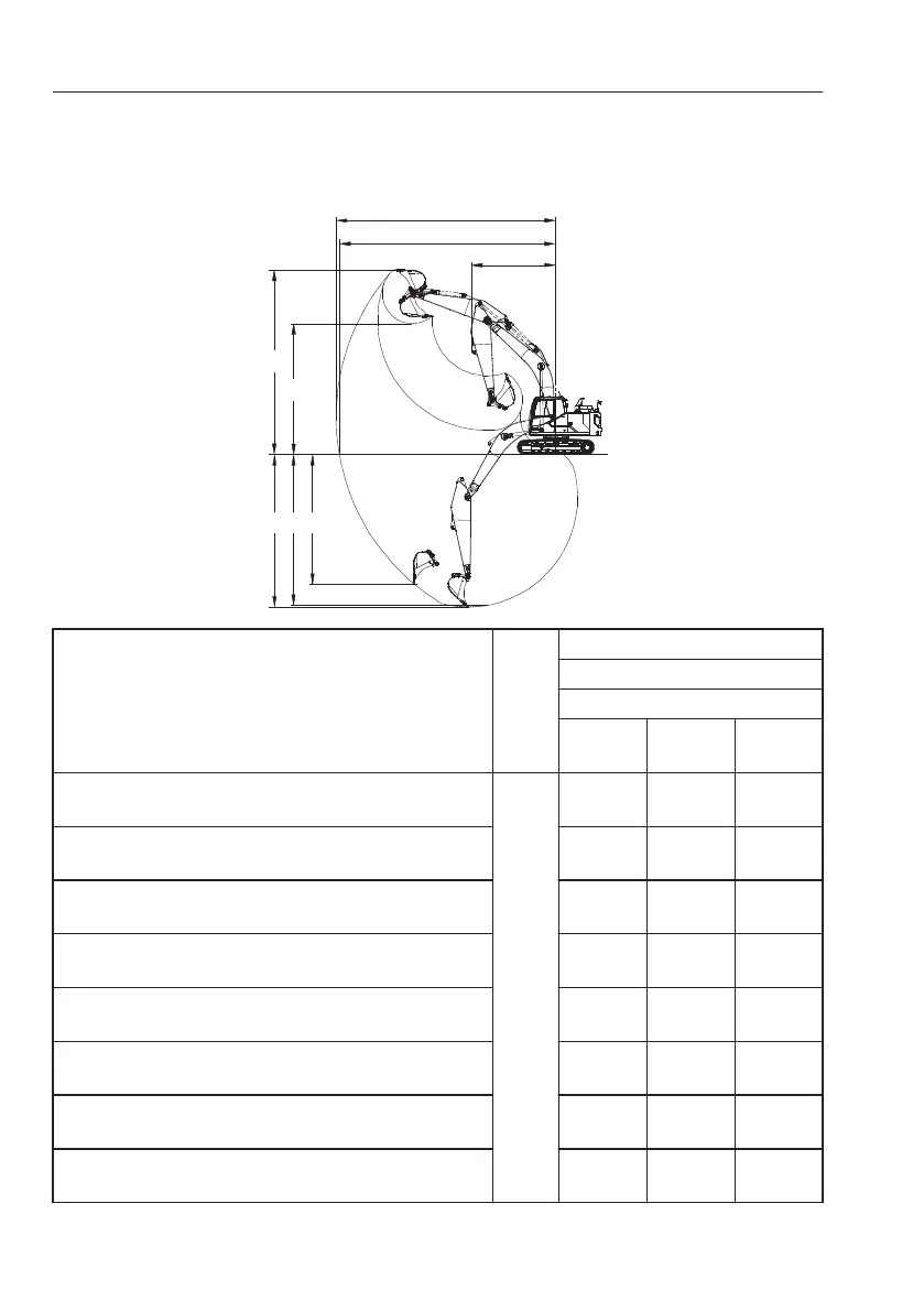 B. Maximum digging reach on ground
