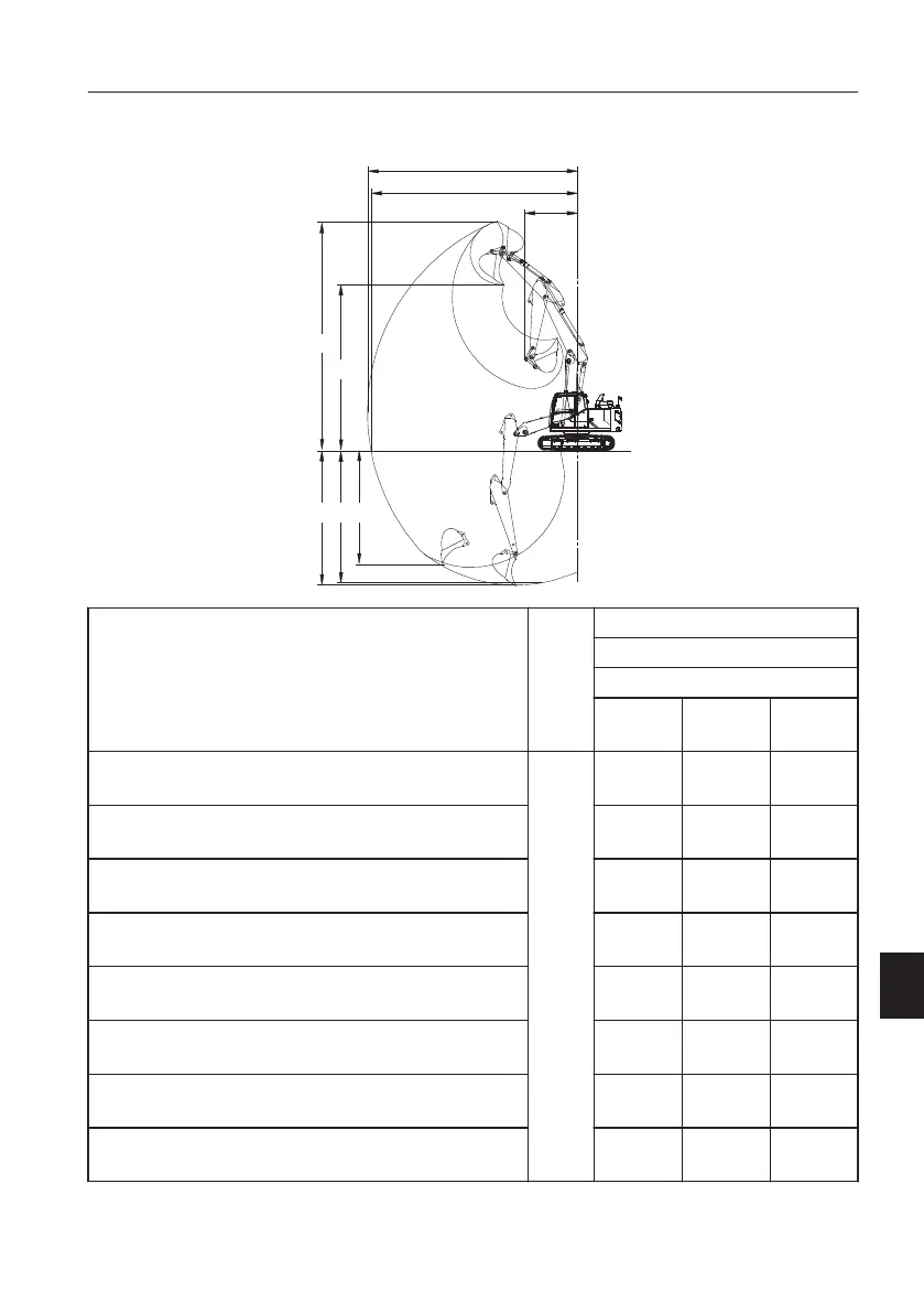 B. Maximum digging reach on ground