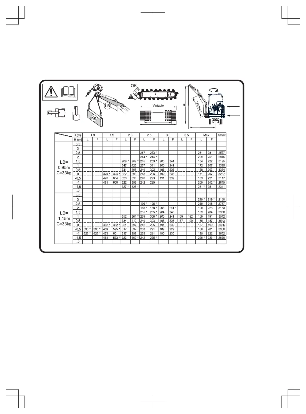 * = Limited by machine’s hydraulic lifting capacity rather than tipping load.