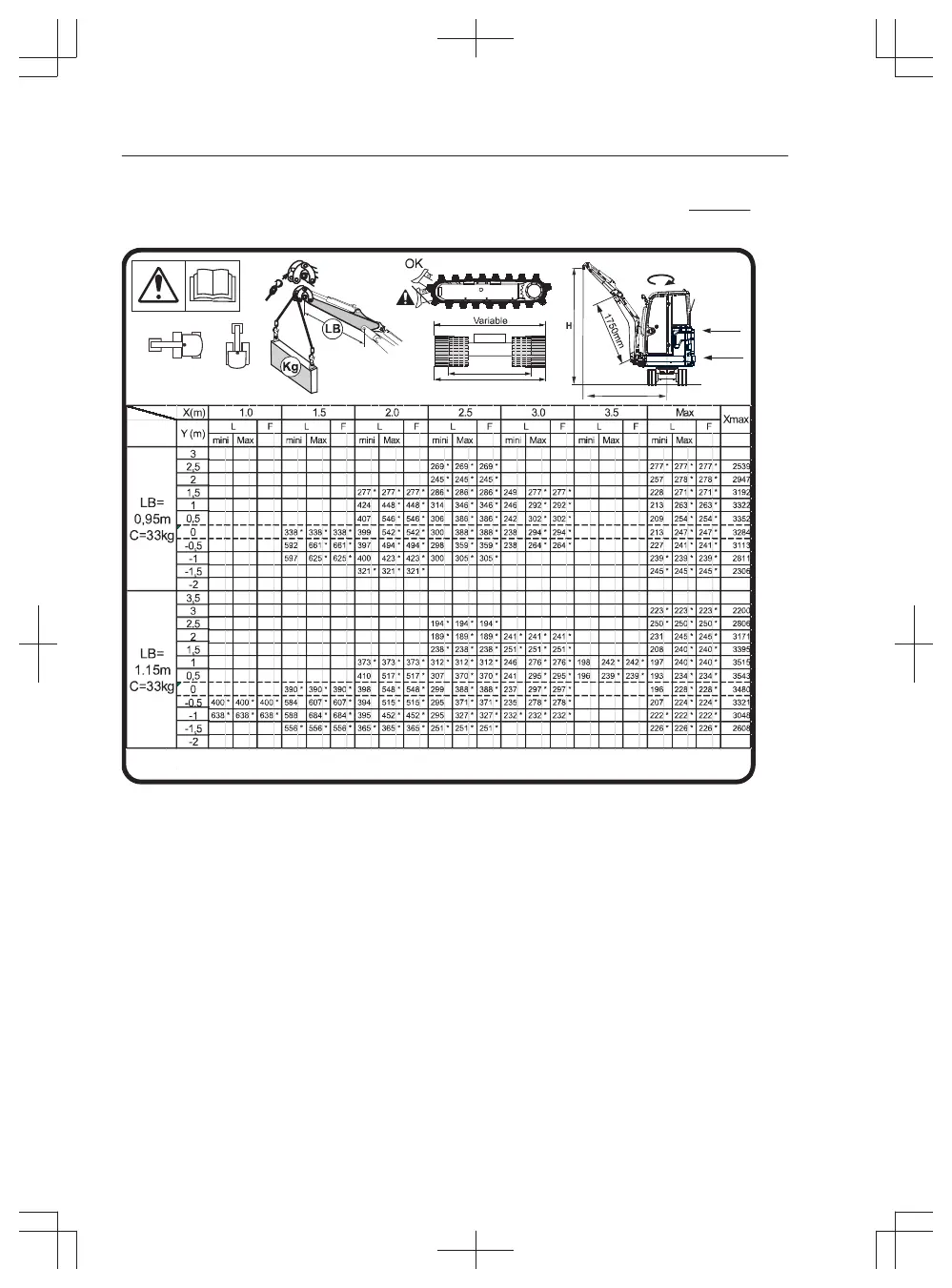 * = Limited by machine’s hydraulic lifting capacity rather than tipping load.