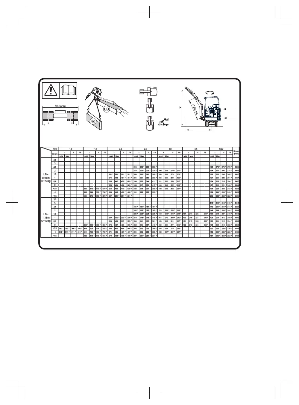 * = Limited by machine’s hydraulic lifting capacity rather than tipping load.