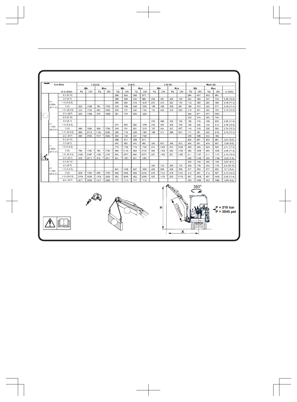 * = Limited by machine’s hydraulic lifting capacity rather than tipping load.