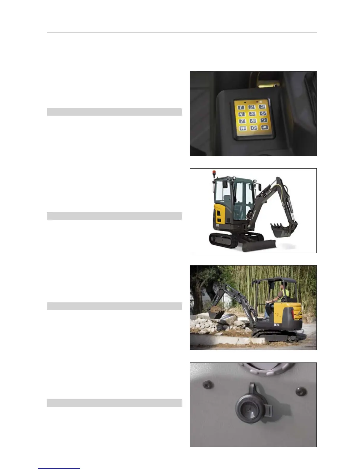 Volvo EC18C - Washer Fluid Filling; Right and Left Rear View Mirrors; Canopy Safe Handrail; Anti Theft Key Pad