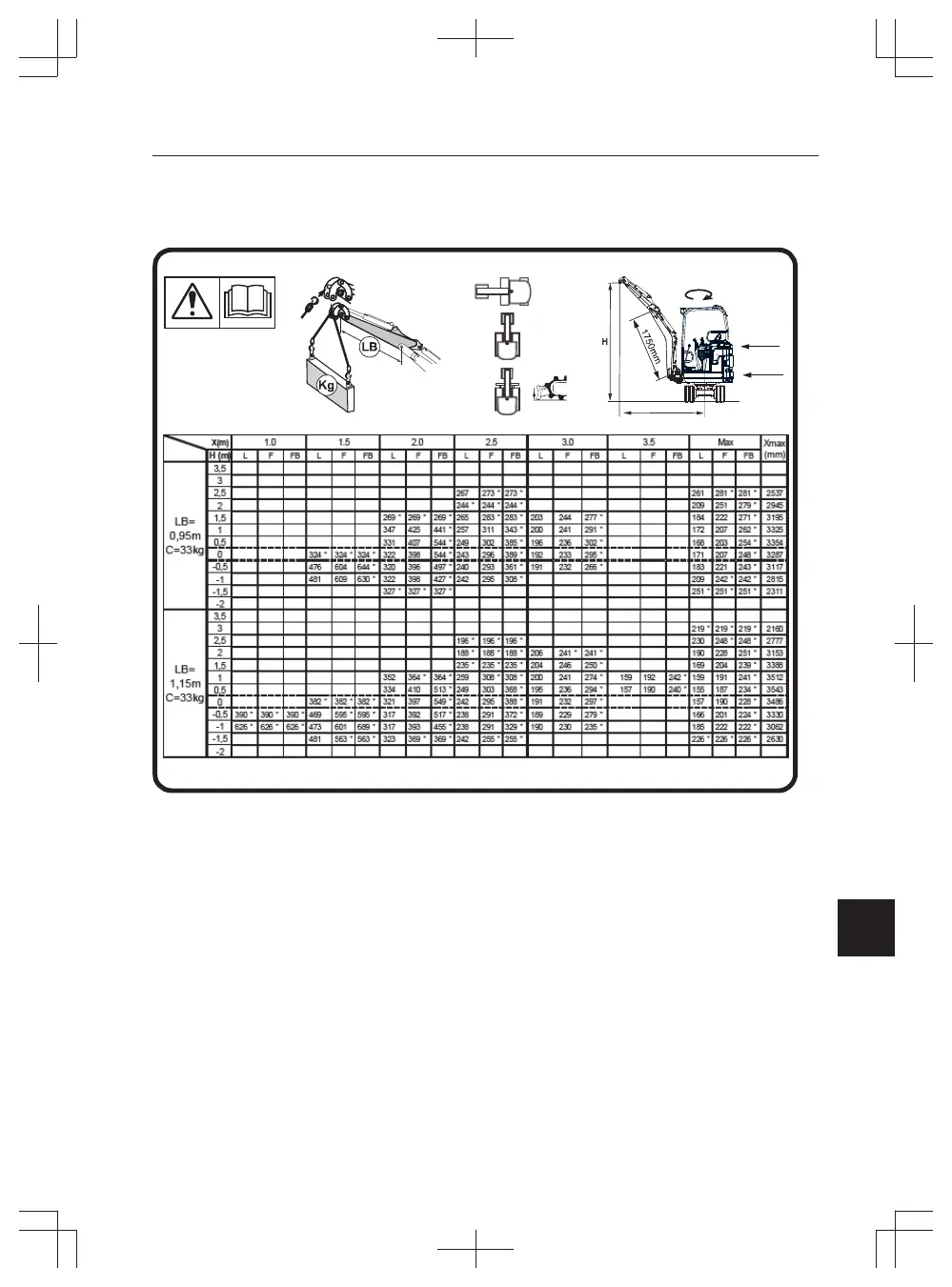 * = Limited by machine’s hydraulic lifting capacity rather than tipping load.