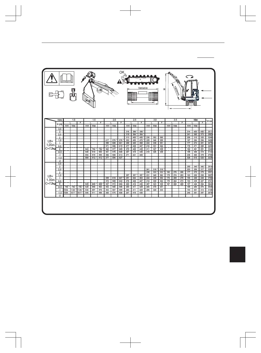 * = Limited by machine’s hydraulic lifting capacity rather than tipping load.