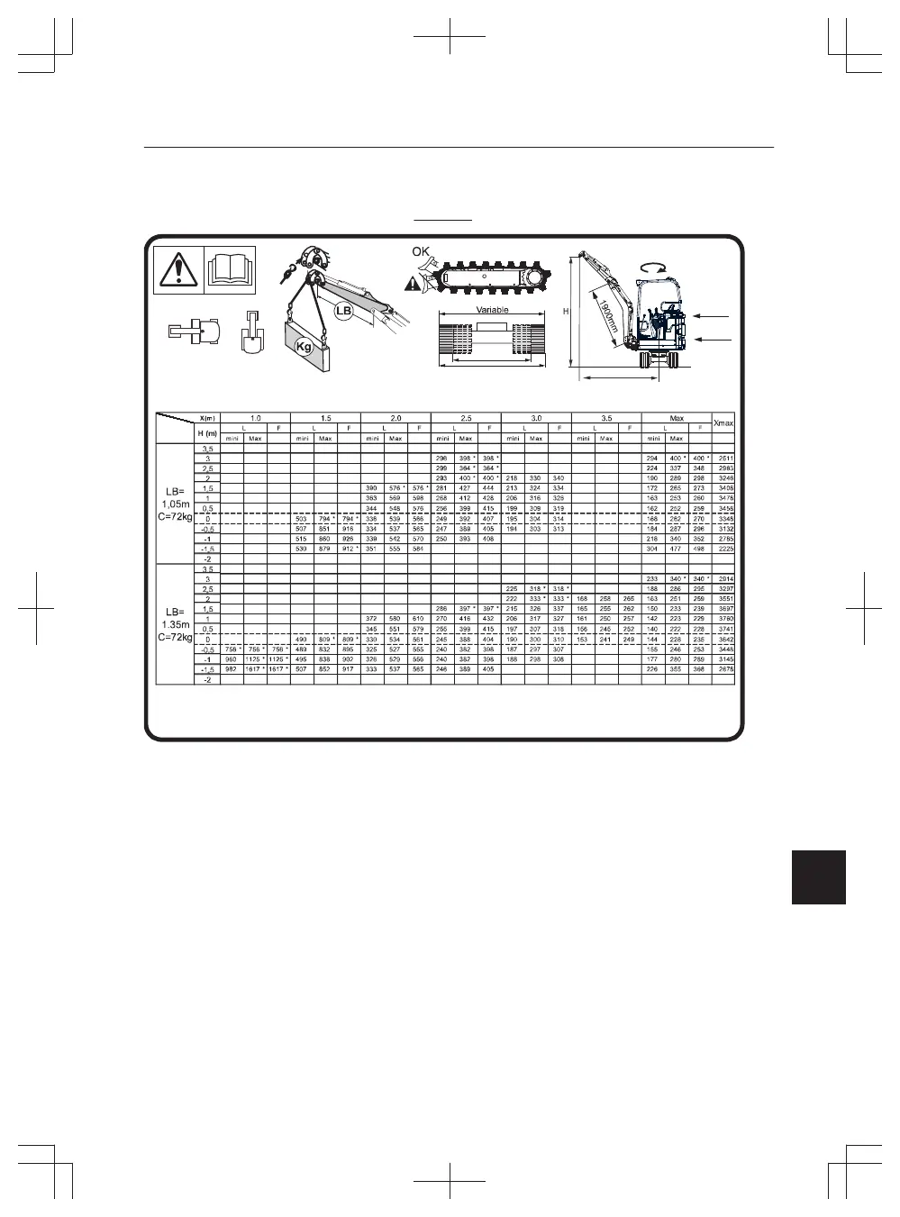 * = Limited by machine’s hydraulic lifting capacity rather than tipping load.