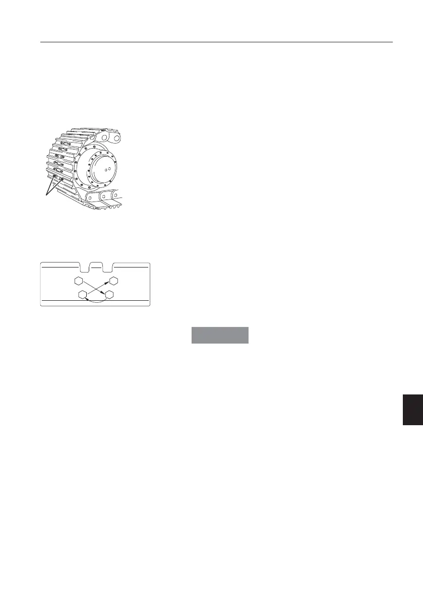 If track shoe screws (A) are loose, the track shoes