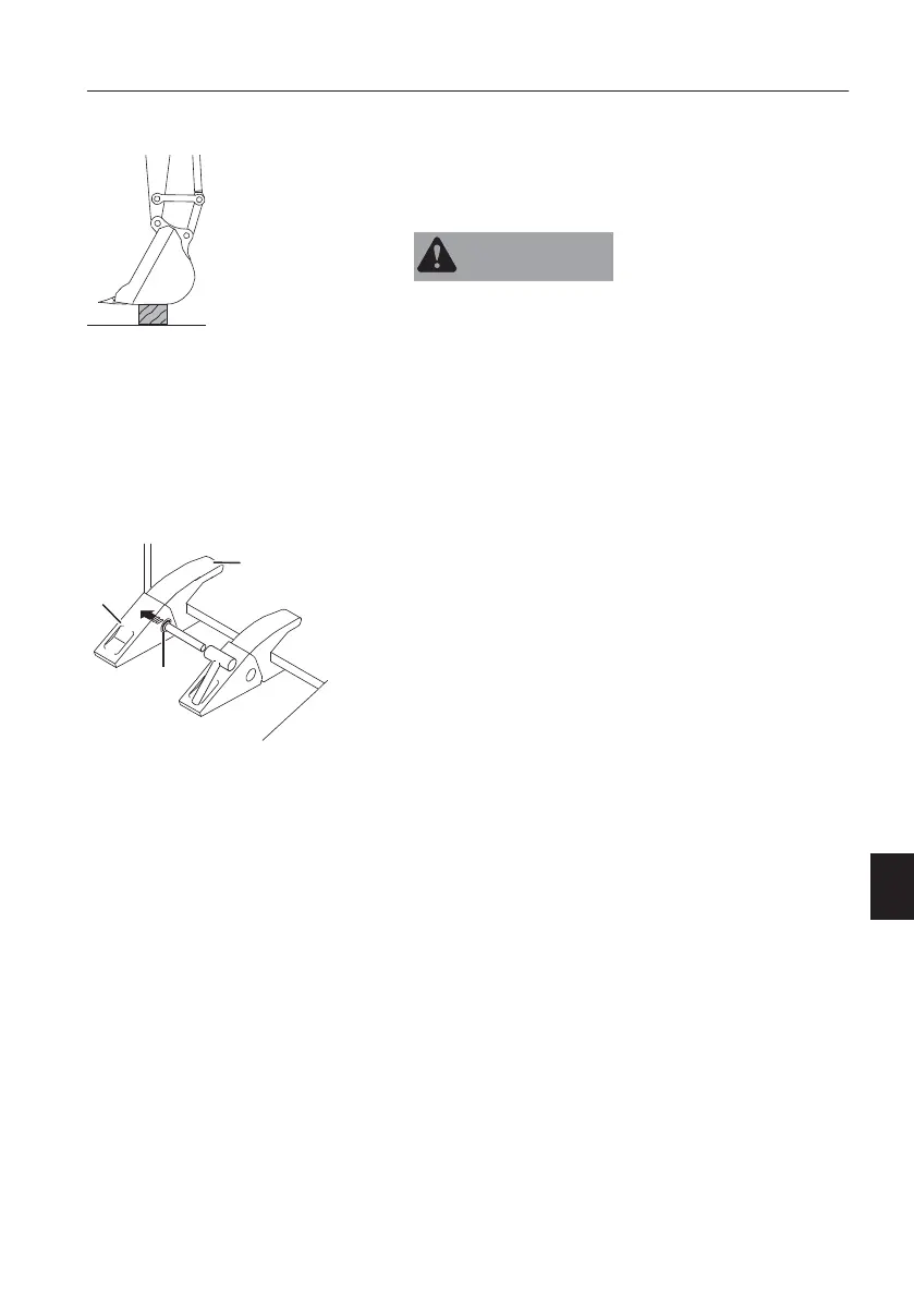 - Stop the engine before replacing the bucket tooth.