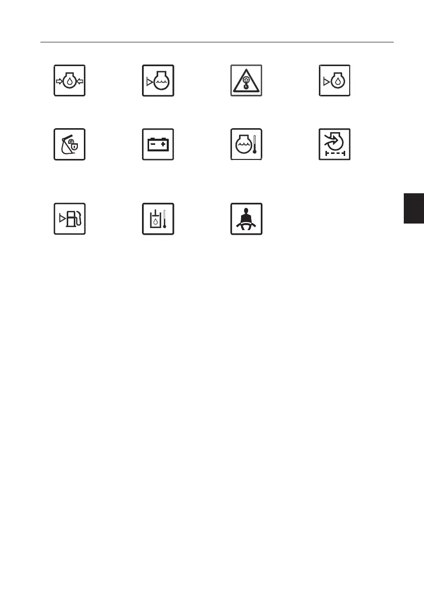 9 Low fuel level 10 High hydraulic oil