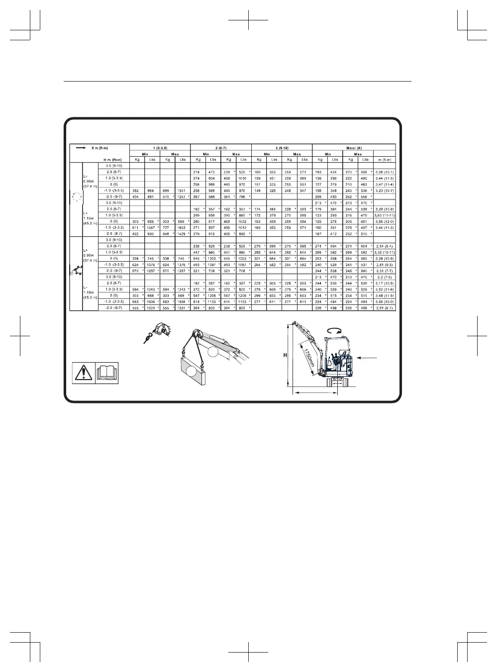 * = Limited by machine’s hydraulic lifting capacity rather than tipping load.