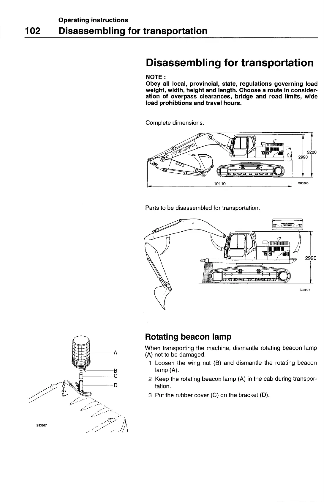 2 Keep the rotating beacon lamp (A) in the cab during transpor-
