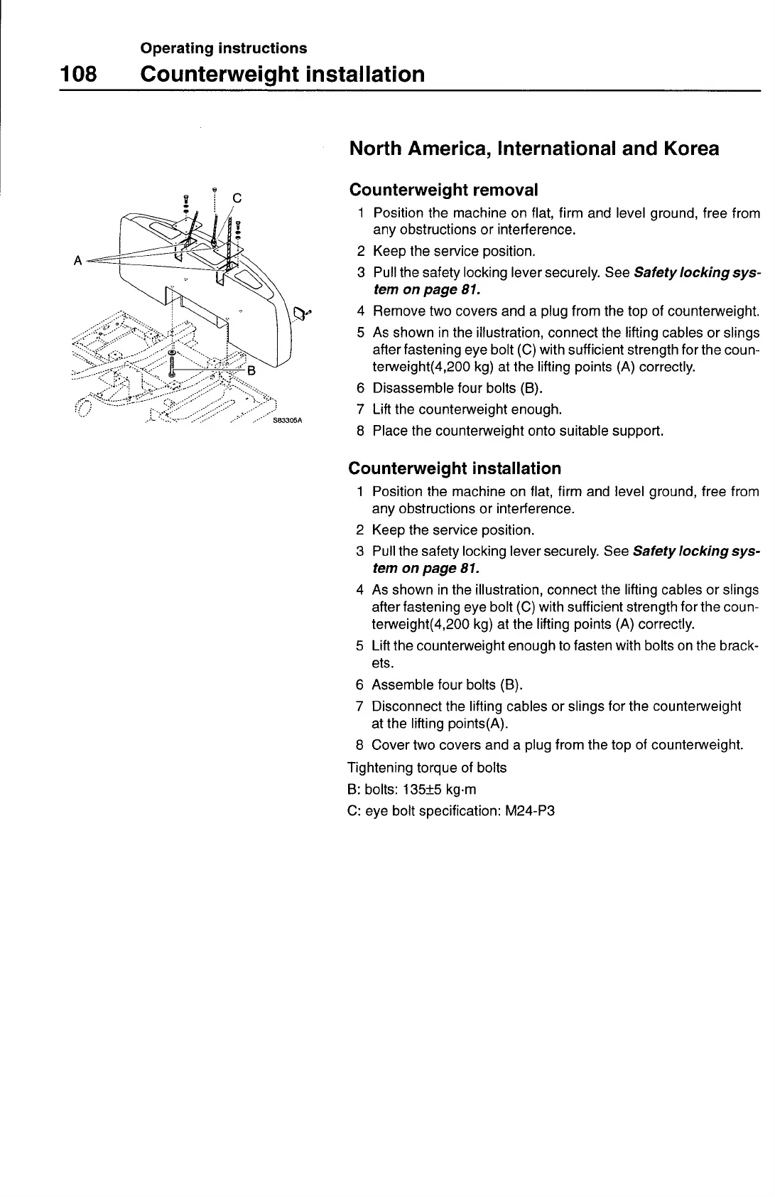 after fastening eye bolt (C) with sufficient strength for the coun-