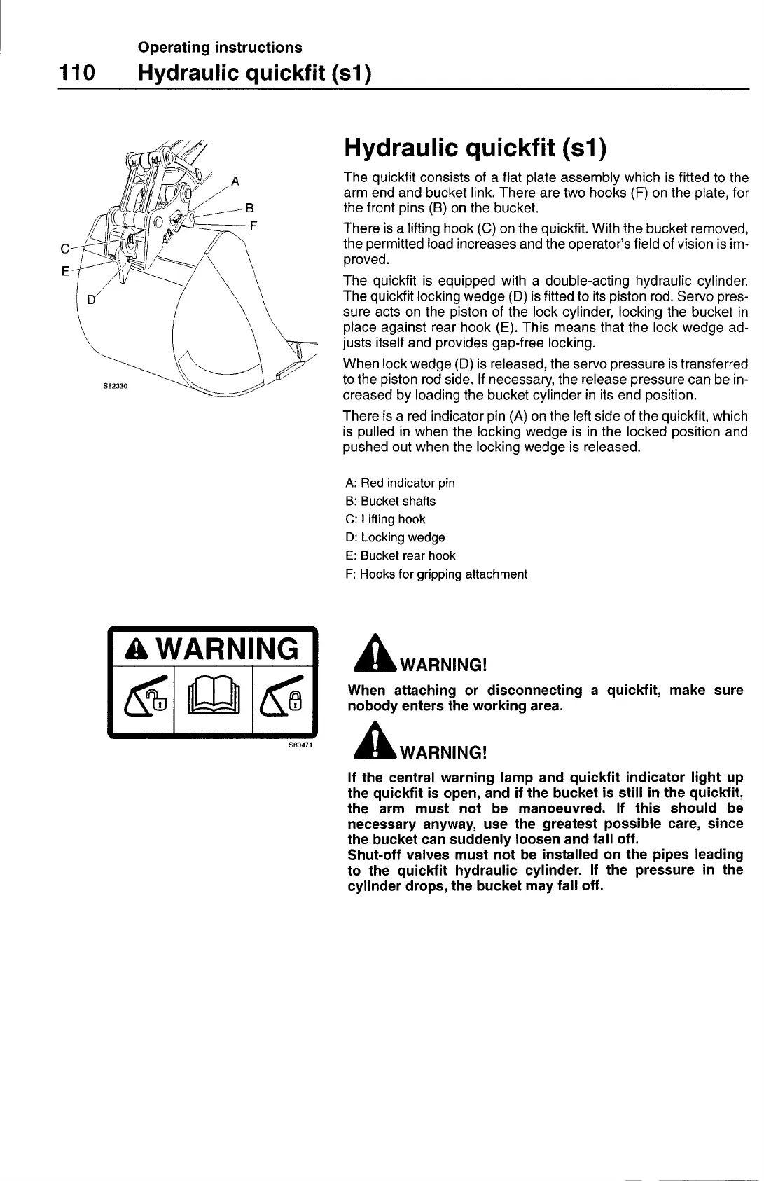 arm end and bucket link. There are two hooks (F) on the plate, for