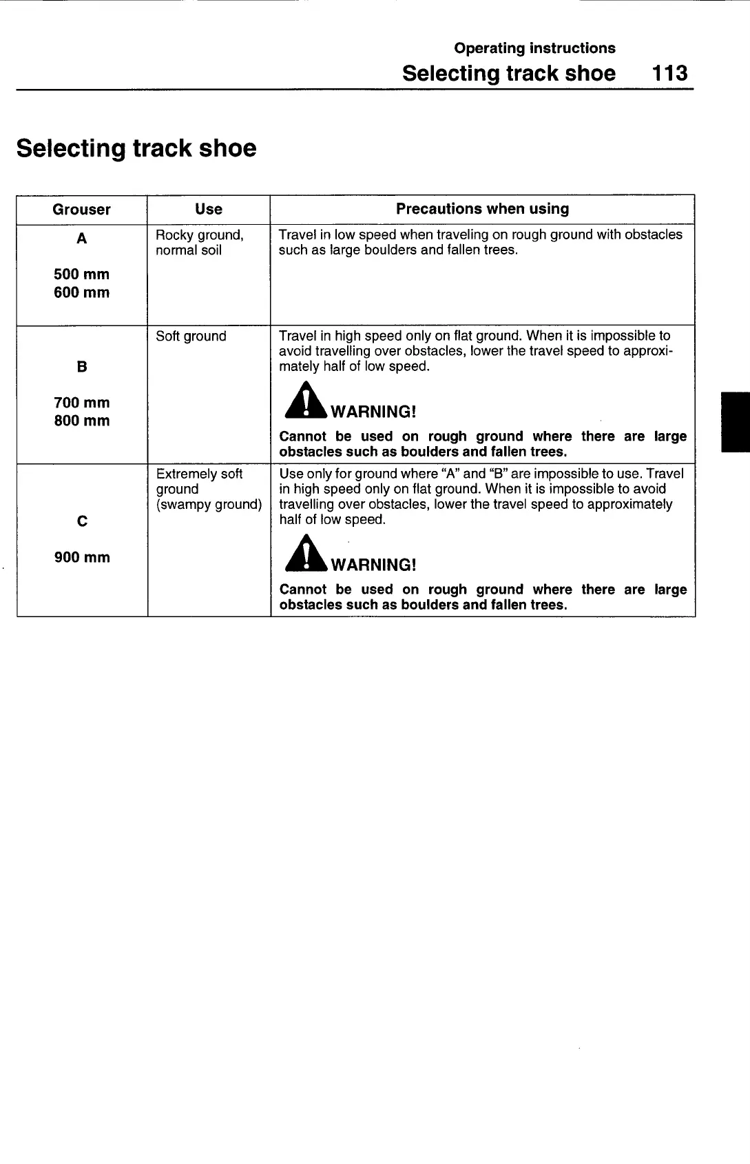 travelling over obstacles, lower the travel speed to approximately