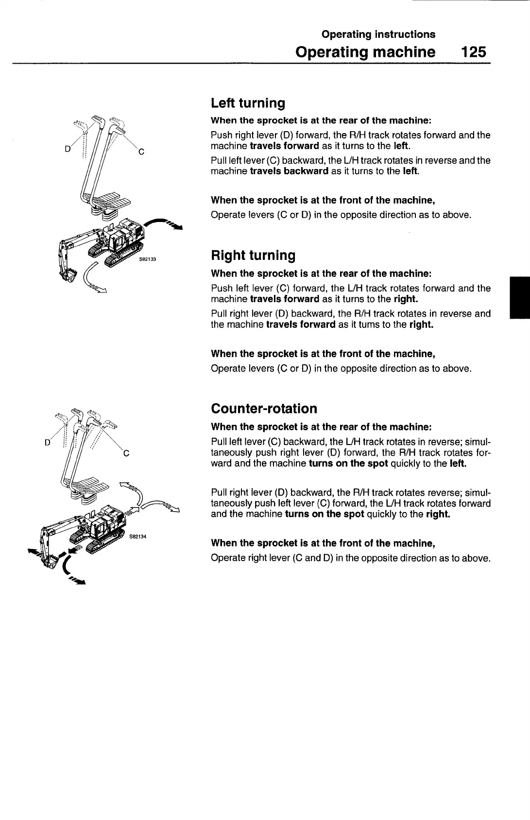 taneously push right lever (D) forward, the R/H track rotates for-