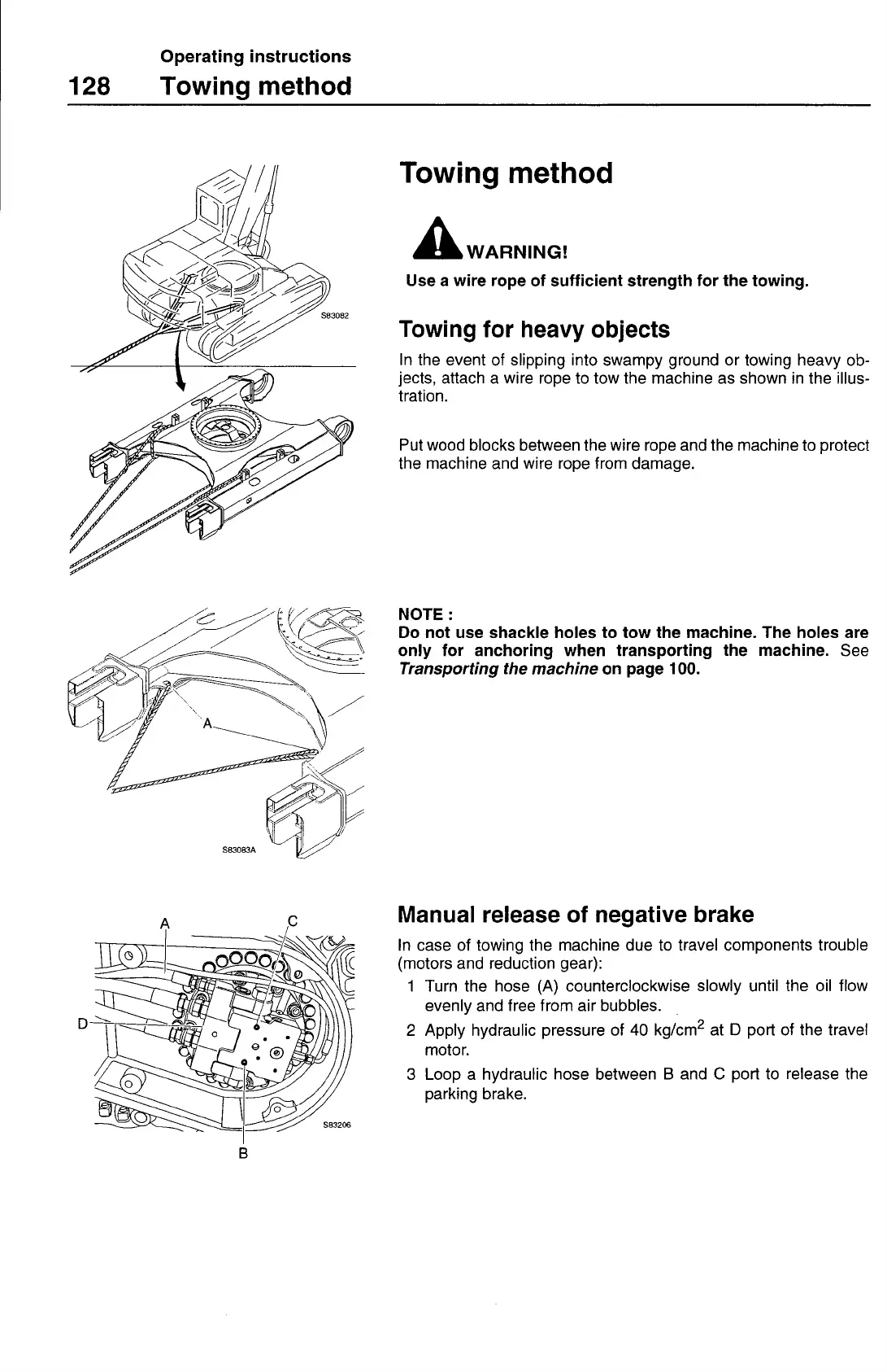 jects, attach a wire rope to tow the machine as shown in the illus-