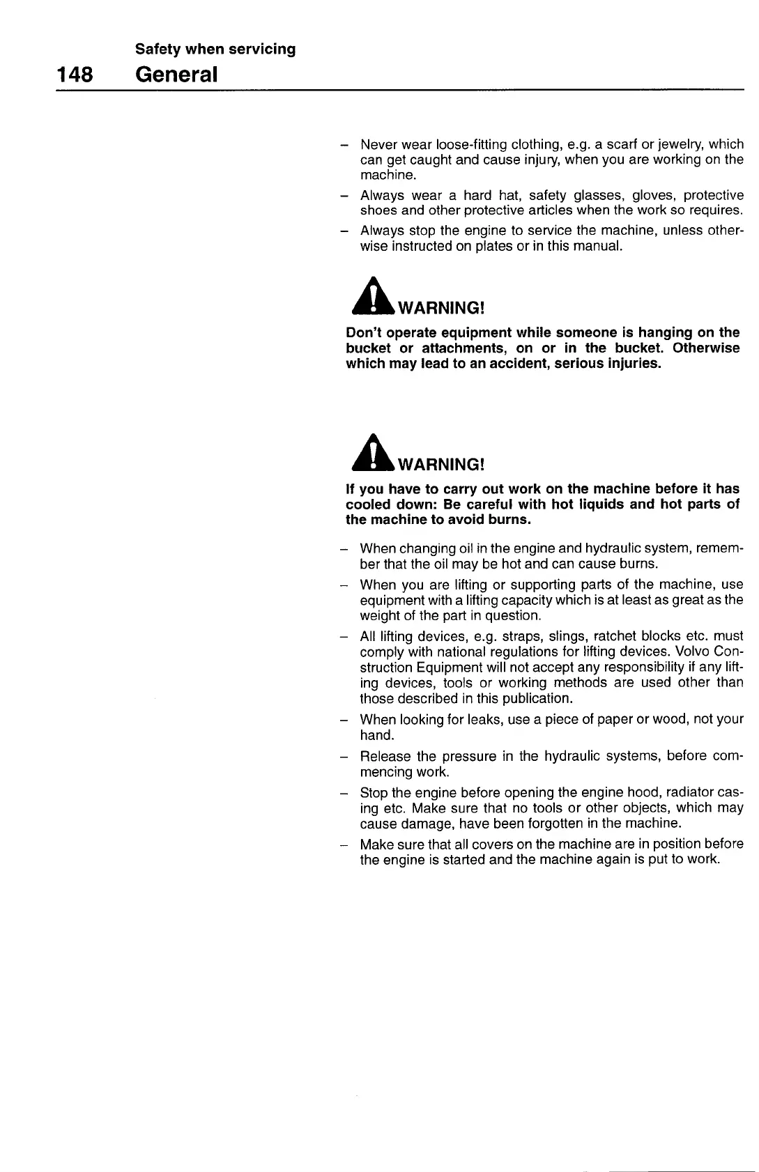 — When you are lifting or supporting parts of the machine, use
