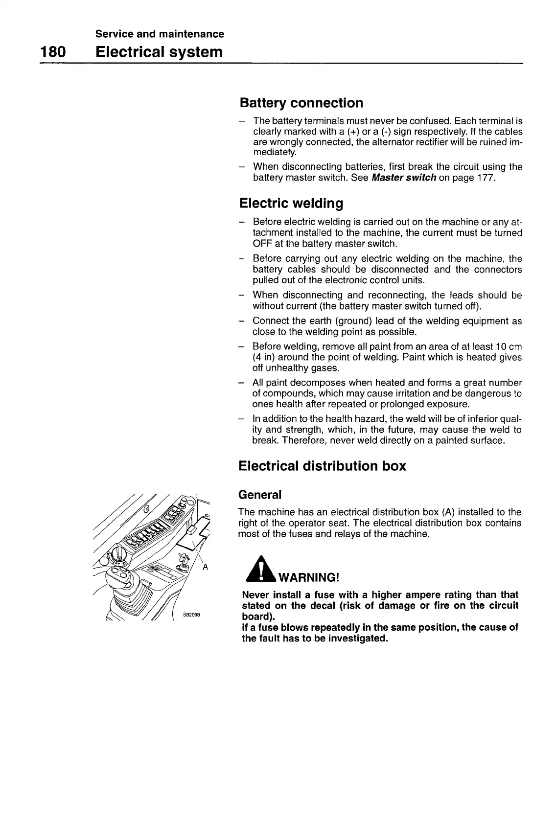 right of the operator seat. The electrical distribution box contains