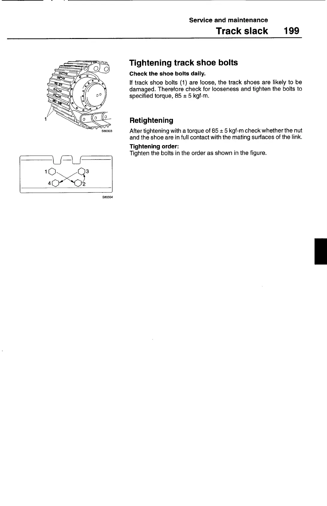 If track shoe bolts (1) are loose, the track shoes are likely to be