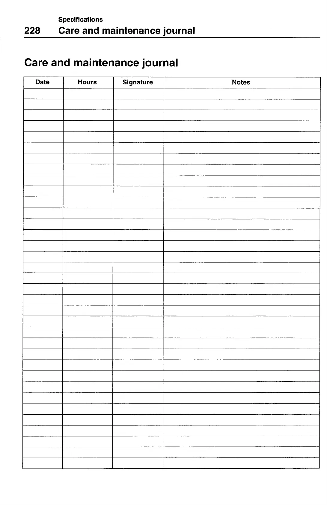 Care and maintenance journal