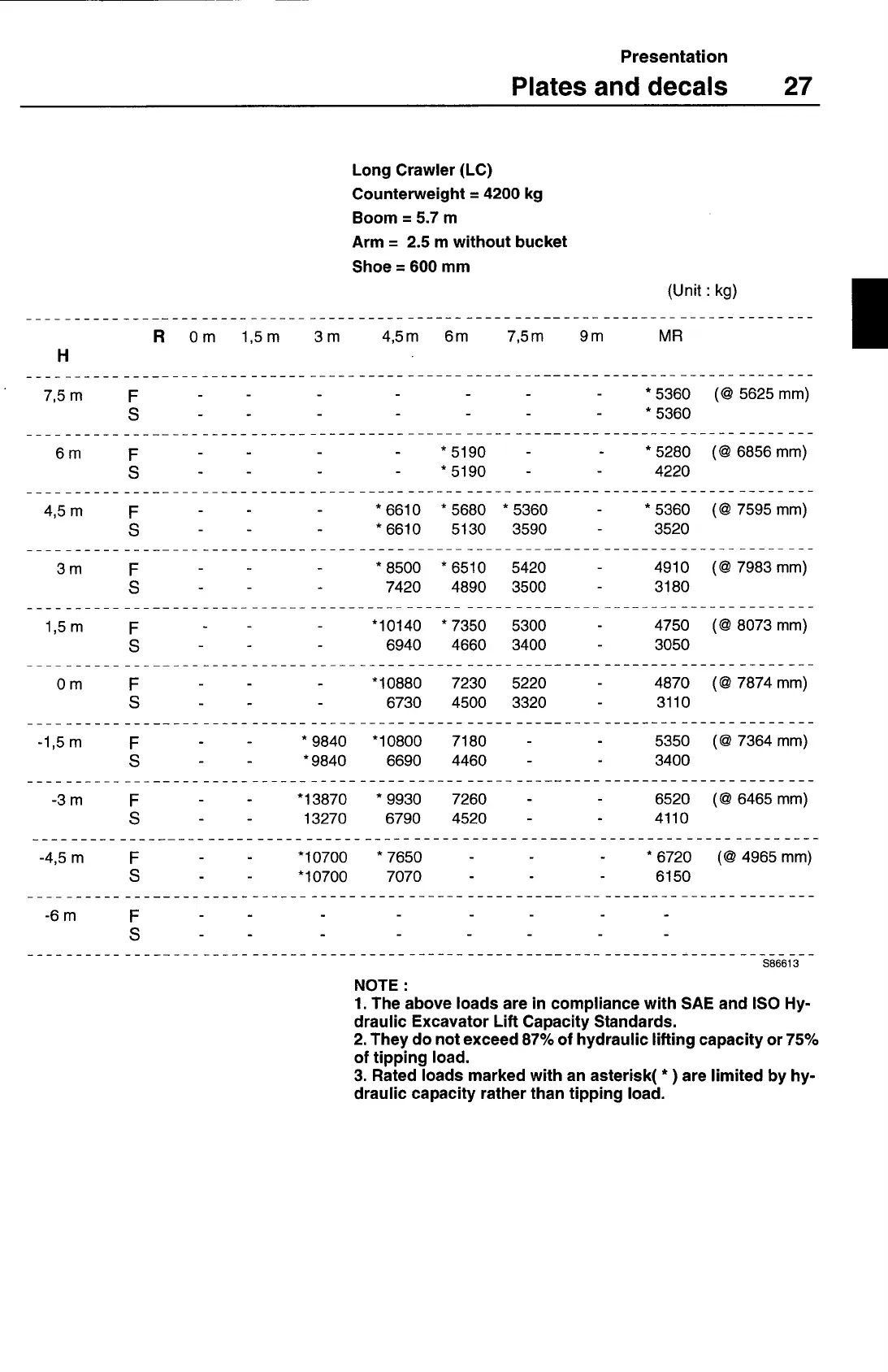 They do not exceed 87% of hydraulic lifting capacity or 75%