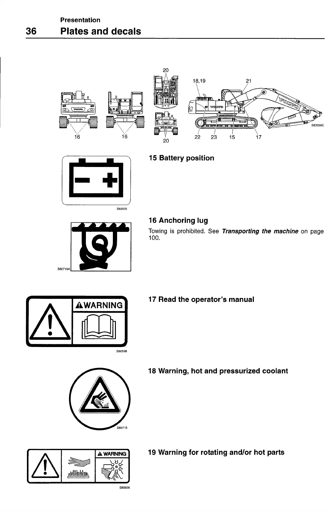 19 Warning for rotating and/or hot parts