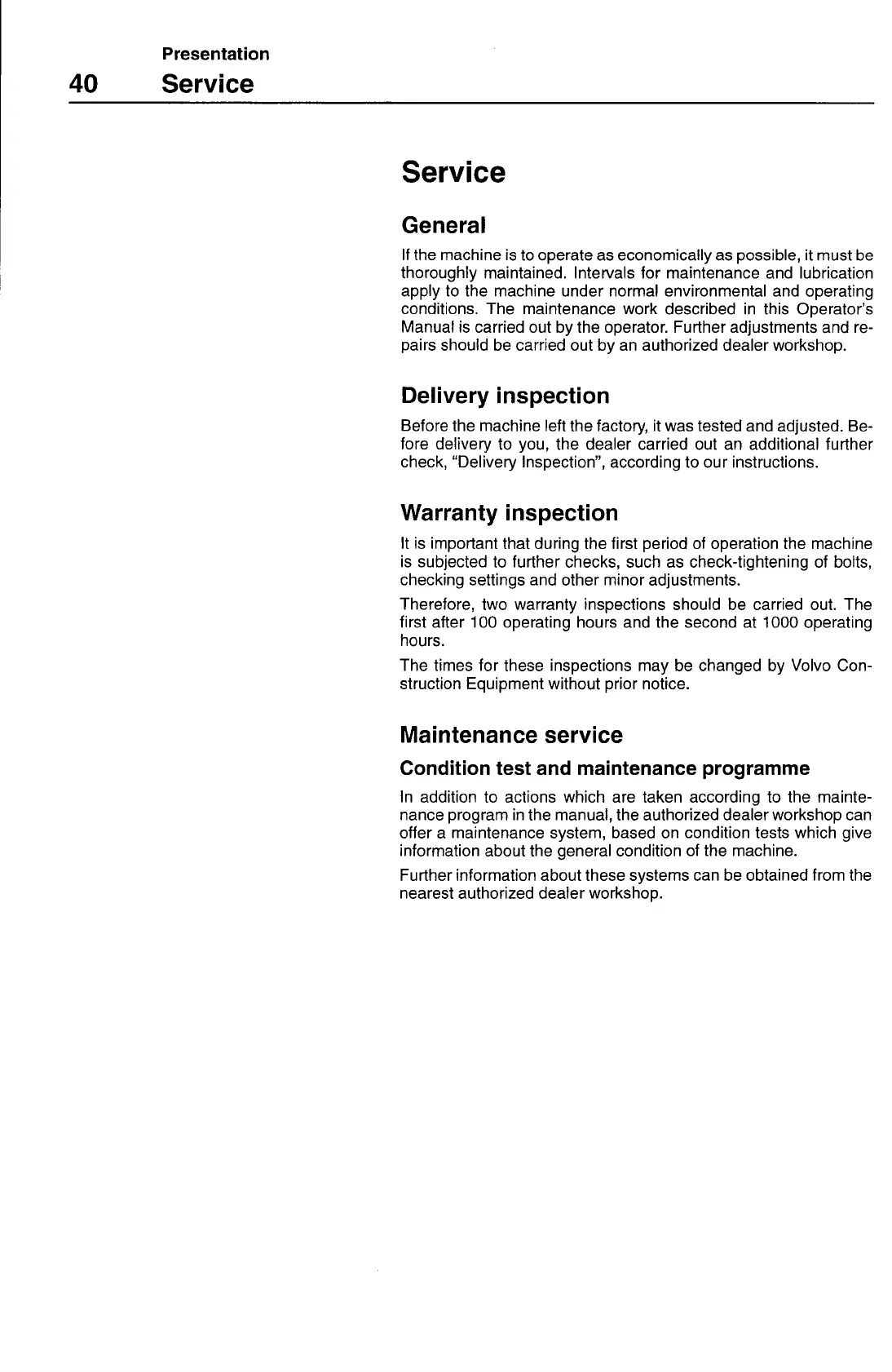 The times for these inspections may be changed by Volvo Con-